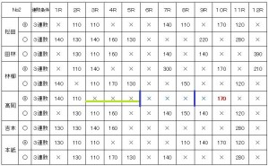 次週から開催替わりというのが若干の不安ですが、No2紙、No4紙が2日続けて兵を破られているので、次回はこの2つが本格的に狙いということになります。(通常開催替わりは様子見推奨)